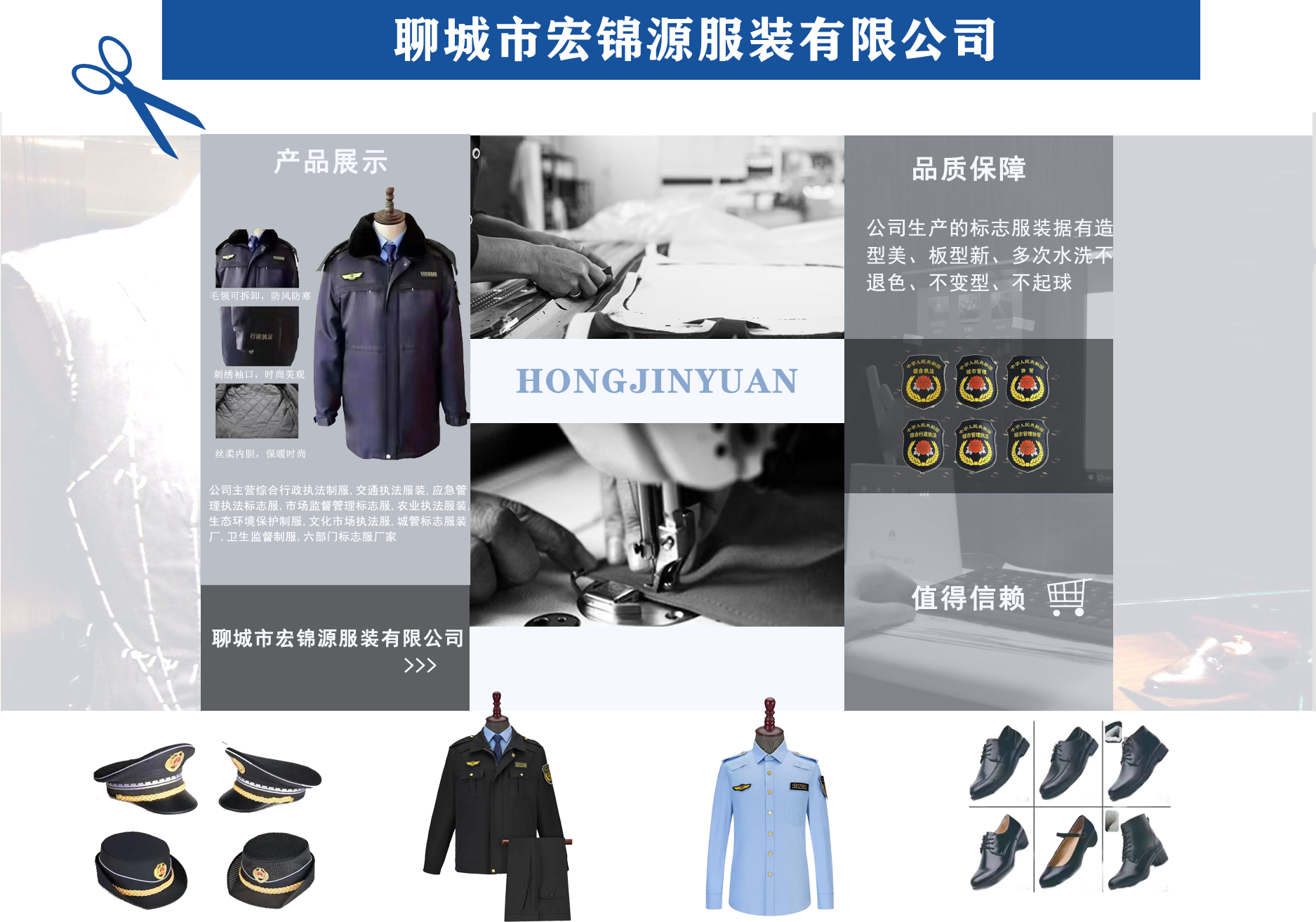 綜合行政執(zhí)法制服,交通執(zhí)法服裝,應(yīng)急管理執(zhí)法標志服,市場監(jiān)督管理標志服,農(nóng)業(yè)執(zhí)法服裝,生態(tài)環(huán)境保護制服,文化市場執(zhí)法服,城管標志服裝廠,衛(wèi)生監(jiān)督制服,六部門標志服廠家-聊城市宏錦源服裝有限公司 公司簡介/ ABOUT